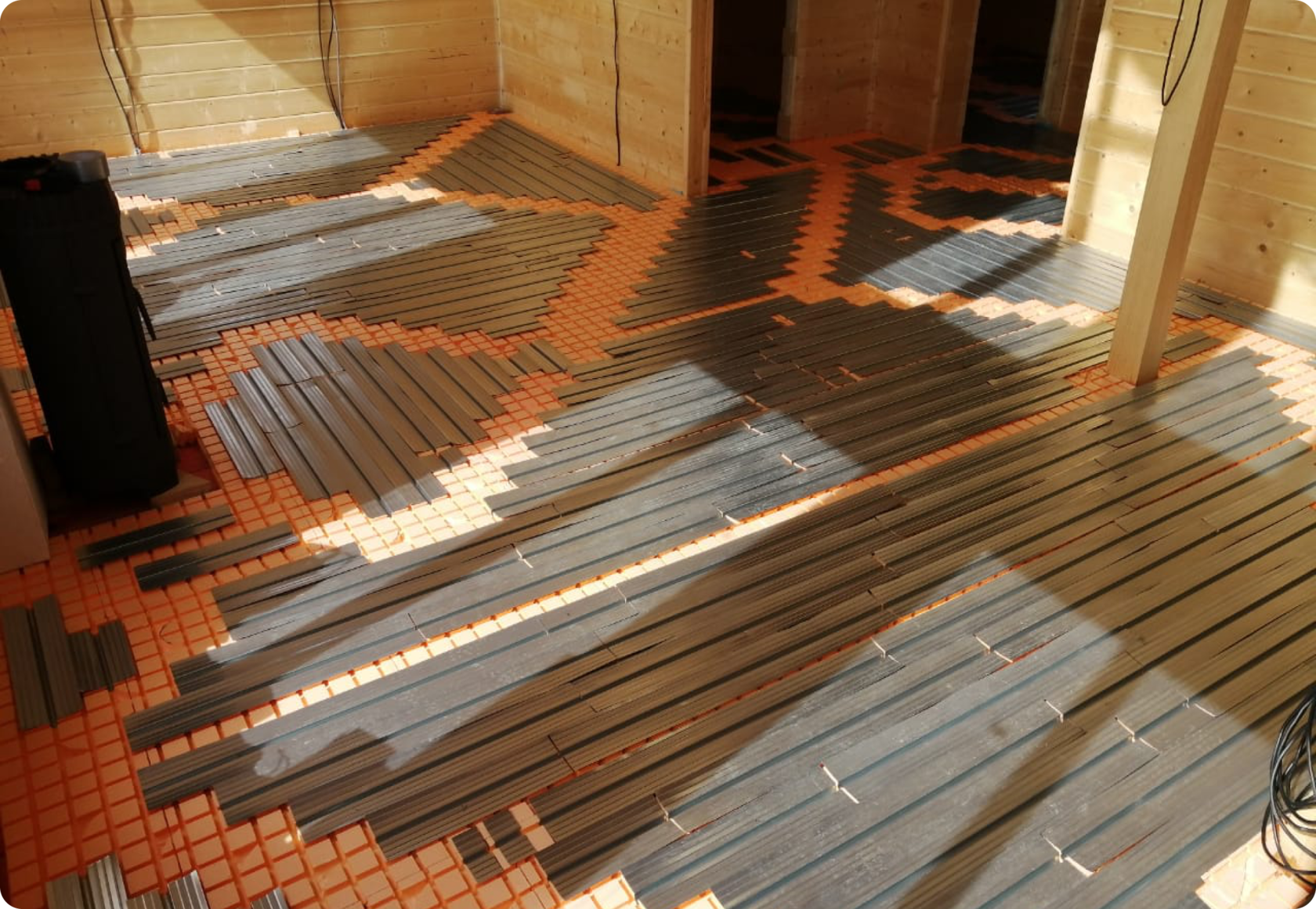 Используется при обустройстве систем «сухого» теплого пола с водяным подогревом в деревянных домах и строениях, исключающих возможность укладки стяжки. С ее помощью можно прочно охватить трубу теплого пола, равномерно распределив тепло по поверхности напольного покрытия. В «мокрых» системах эту функцию выполняет бетонная стяжка.